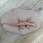 камень Алтайский окатыш ящерицы розовый песок декоры— декоративный камень валун в розово-коричневых цветах камня с ящерицами покрытыми бронзовой патиной. Фактура и дизайн камней повторяет природные карельские окатыши с ящерицами на камнях, выполненных в высокохудожественной технике. Авторский дизайн. Дизайн и текстура камней очень востребованы в формировании альпийских горок в ландшафте, а также при облицовке цветников, розариев и в интерьерных террариумов. Часто такой камень валун применяется в интерьере в дополнение к другим деликатным отделочным материалам. В таких проектах крупный валун работает на контрасте.