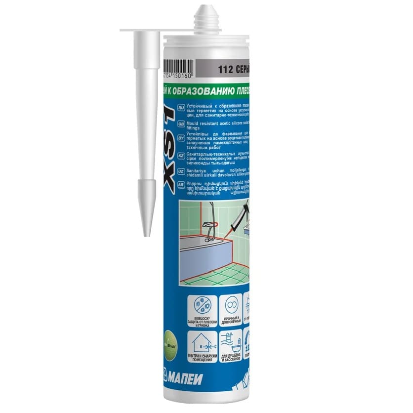 Силиконовый клей герметик Мапеи XS1 №112 — силиконовый герметик производства Mapei предназначен для заполнения деформационного шва на полах и стенах с удлинением +-25% и шва вокруг люков невидимок. Силиконовые цветные герметики не содержат растворителей и стойкие к плесени и грибку применяются во влажных условиях ванных комнат, душевых, банях, саунах и на полах и стенах помещений плавательных бассейнов, а также снаружи помещений в керамической облицовке. силиконовые цветные герметики не заменимы для герметизации неплотных примыканий в ванной комнате, например стык стены и ванны, стен и душевого поддона, а также используются для герметизации зазоров в люках невидимках под плитку. Цвет силиконового герметика подбирается в тон под затирку. В этом плане стоит обратить внимание на номер цвета.