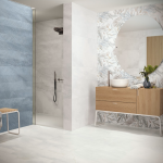 керамическая плитка Halima Blanc rect 60×120 см- Это новая испанская коллекция просто создана для воплощения уютных и одновременно стильных проектов ванных комнат в жизнь. Серия плитки Halima Blanc 60×120 позволяет спроектировать дизайн ванной комнаты приближенный к жилым комнатам в интерьере, т.к. облицовка по своей фактуре похожа на обои, однако совместила в себе все качественные свойства керамики. Эмаль имеет очень деликатный окрас под венецианскую штукатурку в белесых тонах.