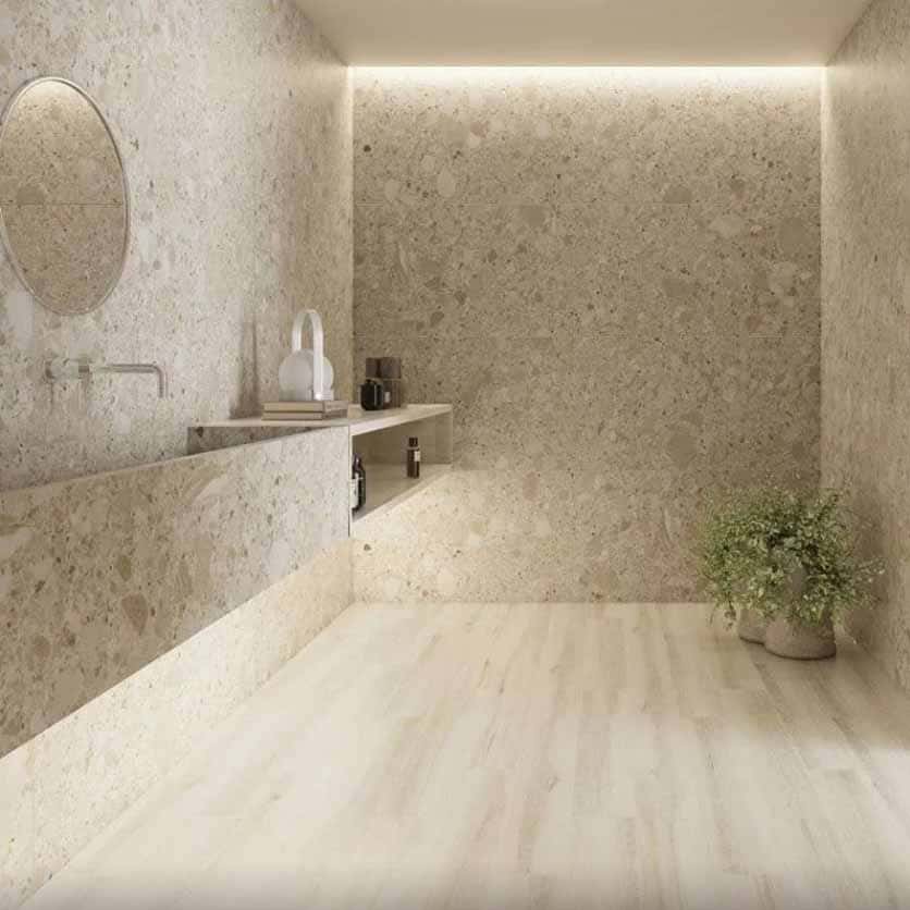 Керамогранит кремовый терраццо Pietra Gre Di Crema 60х120 представляет собой матовый материал с вкраплениями мрамора. Ректификат предназначенный для отделки пола и стен в любом помещении.