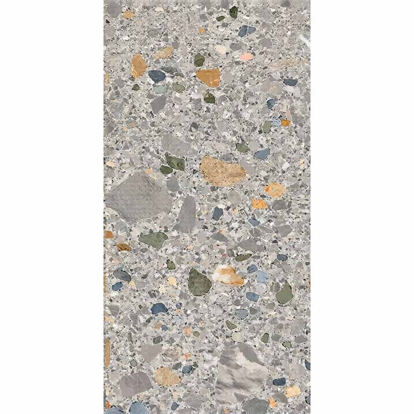 Керамогранит Pietra Gre Di Multi 60×120 60х120 представляет собой матовый терраццо серого цвета с разноцветными вкраплениями мрамора. Ректификат предназначенный для отделки пола и стен в любом помещении.