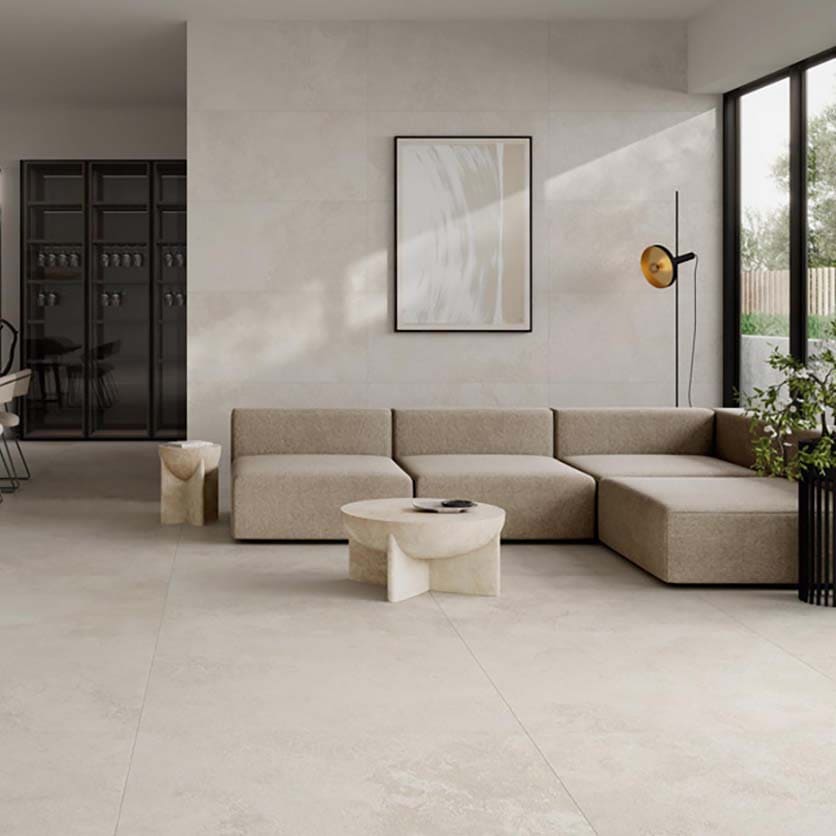Керамогранит Ropalano pietra ivory 90×90 см представляет собой плиты формата 90х90 под бежевый матовый мрамор травертин с неяркой фактурой дымчатых прожилок. Мягкий дизайн создает элегантный и современный интерьер. Подойдет для любого проекта от классического дизайна до современного минималистического.