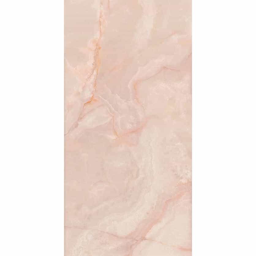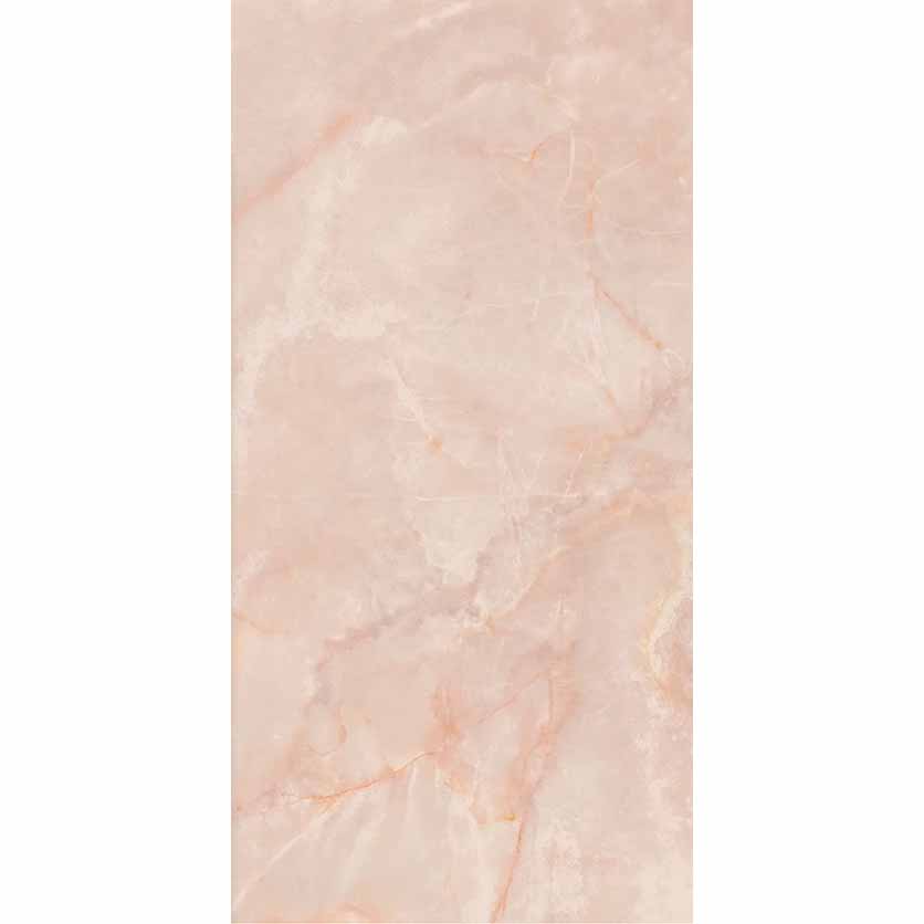 Керамогранит Cr. Lux Noor Peach Pul. Rect. 60×120 представляет собой испанский керамогранит под розовый мрамор оникс. Цвет данного артикула воспроизводит с невероятной точностью уникальный розовый оникс с белыми и бежевыми включениями. Поверхность у плит полированная с высокой глянцевой отражающей способностью. В производстве керамогранита используют современные цифровые технологии. Благодаря этому в рисунке данного материала используется большое количество лиц эмали. Плитки демонстрируют уникальный рисунок прожилок. Поэтому можно уверено назвать этот керамогранит полным аналогом природного розового оникса.