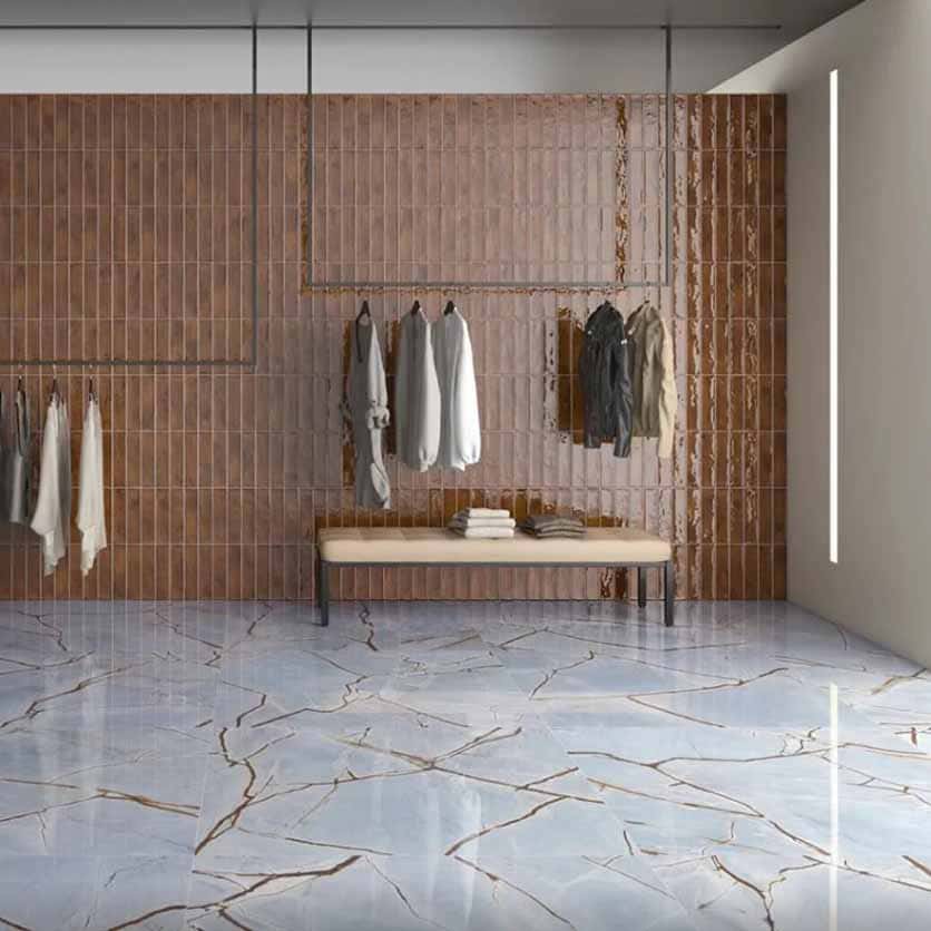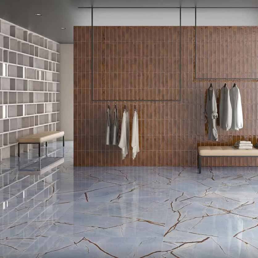 Керамогранит Cr. Lux Nirvana Pul. Rect. 60×120- керамогранит под синий мрамор с коричневыми прожилками хаотично разбивающим фактуру камня. Рисунок имитирующий многогранный синий мрамор. Он обладает ярким контрастным рисунком, в который органично вплетаются прожилки. Материал обладает супер глянцевой поверхностью и благодаря своему изысканному дизайну применяется в качестве акцентов и декора в интерьере.