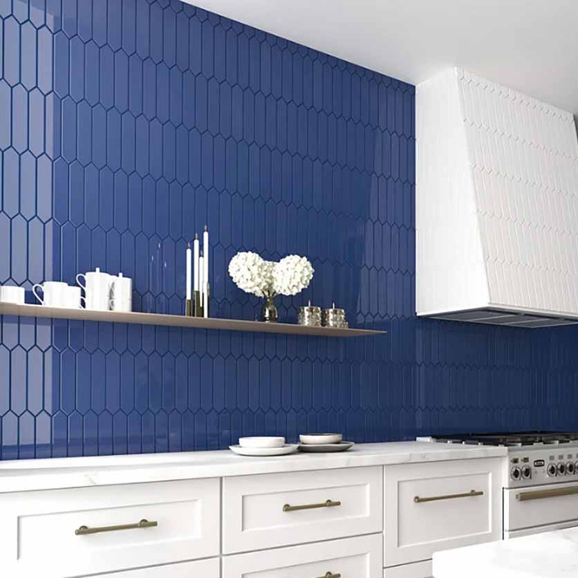 Плитка ARROW Adriatic Blue 5х25 см это настенная глянцевая керамическая плитка шестиугольной вытянутой формы. Необычный формат придает особую структуру облицовке. Применяется для отделки стен ванных комнат, санузлов, а также для фартука кухни.