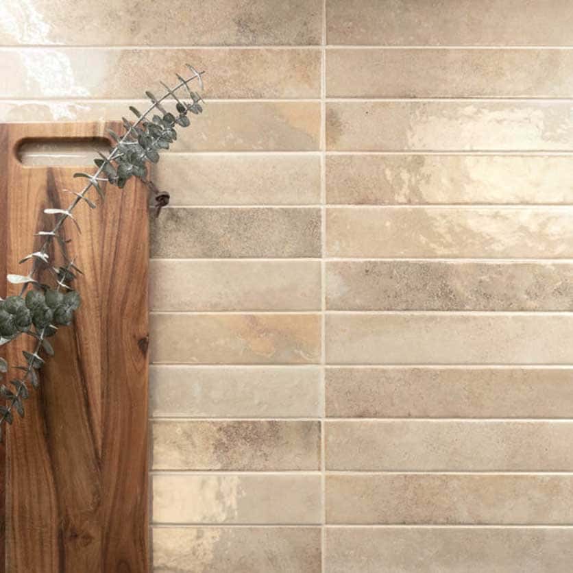 Плитка Bali Almond 5х40 см это настенная глянцевая керамическая плитка прямоугольной формы кабанчик. Необычный формат и неравномерный окрас придает особую структуру облицовке. Применяется для отделки стен ванных комнат, санузлов, а также для фартука кухни.