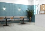 Кроме того, ярко выраженная удлиненная форма плитки под кирпичик отлично подходит для отделки стен в ванной комнате, санузлах. Цвет бирюзовой плитки прекрасно контрастирует с белым санфаянсом. Также цвет востребован в отделке общественных интерьеров. Интерьеры в стиле ретро очень популярны, особенно в общепите и бутики одежды. Ретро стилистика легко воспринимается. Интерьеры такого стиля всегда наполнены уютом, а пространство располагает к отдыху. Формировать интерьер и наполнять его аксессуарами очень просто. Даже не опытные дизайнеры прекрасно справляются с этой задачей.