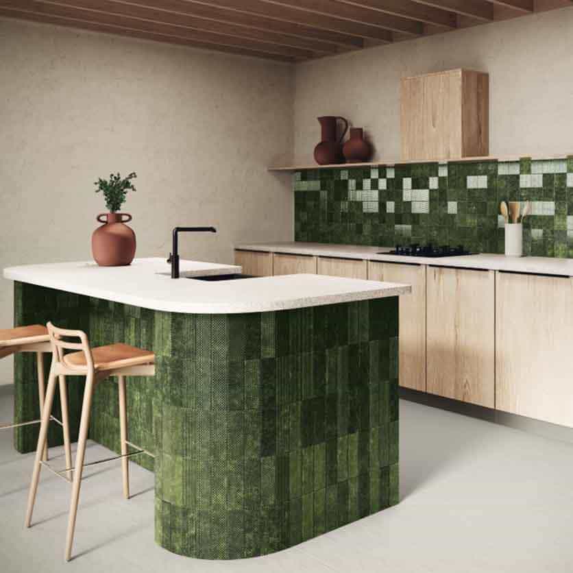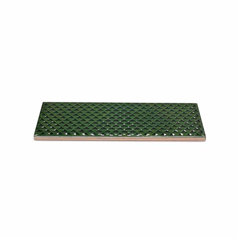 Плитка Carmen Mimosa emerald 6.5×20 представляет собой эксклюзивную керамику ручной работы покрытую кракелюром. Дизайнерская коллекция с рельефным рисунком по всей плоскости плитки создает особую игру света. Спецификой коллекции является неравномерный окрас плиток одной партии, что говорит о применении ручной технологии окрашивания.