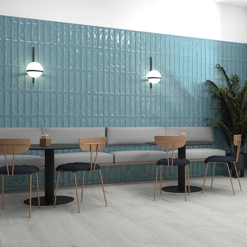 Спецификой дизайна испанской плитки Pamesa Mayolica turquesa является ее небольшой формат и прямоугольная форма, а также уникальный цвет. Бирюзовая плитка с глянцевой эмалью на пике популярности. Такой оттенок кафеля наполняет интерьер особым благородством, формирует ретро стиль и отлично вписывается в неоклассическую стилистику. Эффектно смотрится глянцевая эмаль бирюзовой керамической плитки.