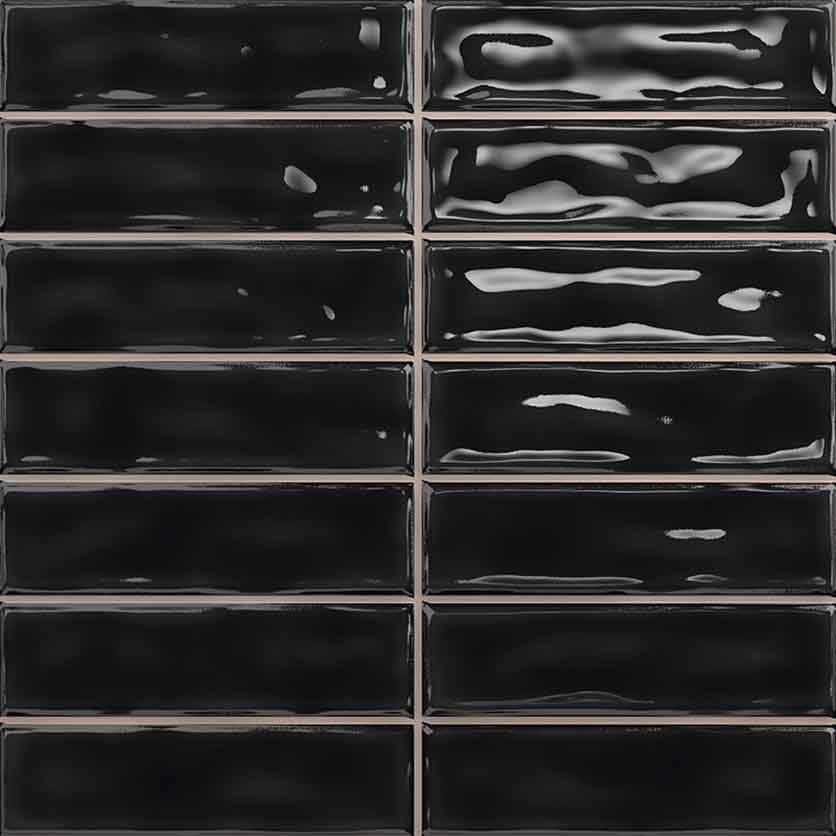 Керамическая плитка Sticks Black 20×20 см представляет собой настенную плитку в формате 200х200 мм, визуально разделенную на 14 частей и формирующую облицовку прямоугольными плиточками.