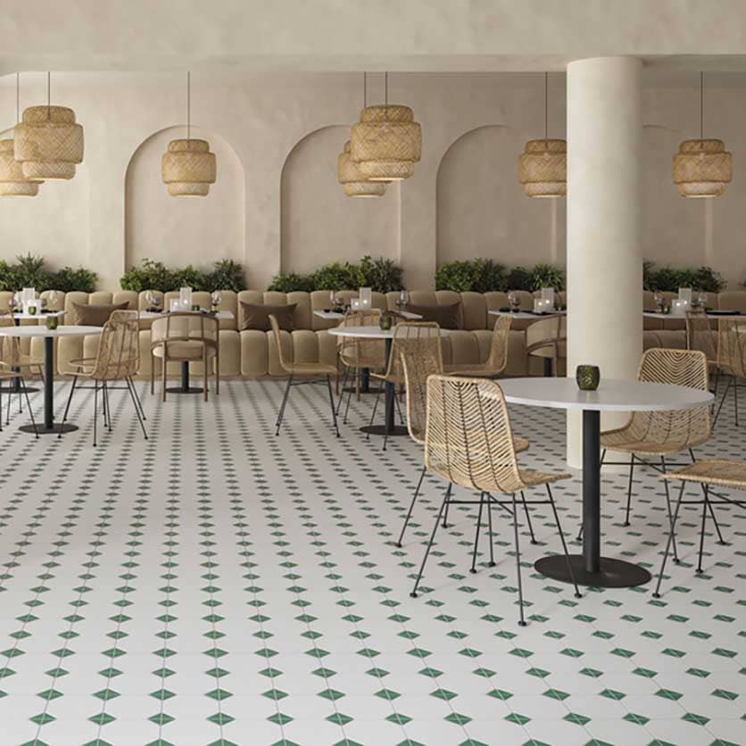 Керамогранит Canterbury Green 33,3х33,3 см это матовый белый керамогранит в небольшом формате 33,3*33,3 см, который визуально разделен на 4 плитки. Дизайн отделочного материала разработан в стиле мелкой плитки и имитирует белые матовые восьмиугольники формата 16,5х16,5 см с зелеными вставками. Коллекция предполагает затирку шва как по контуру плиток, так и шов разделяющий плитку вдоль и поперек.