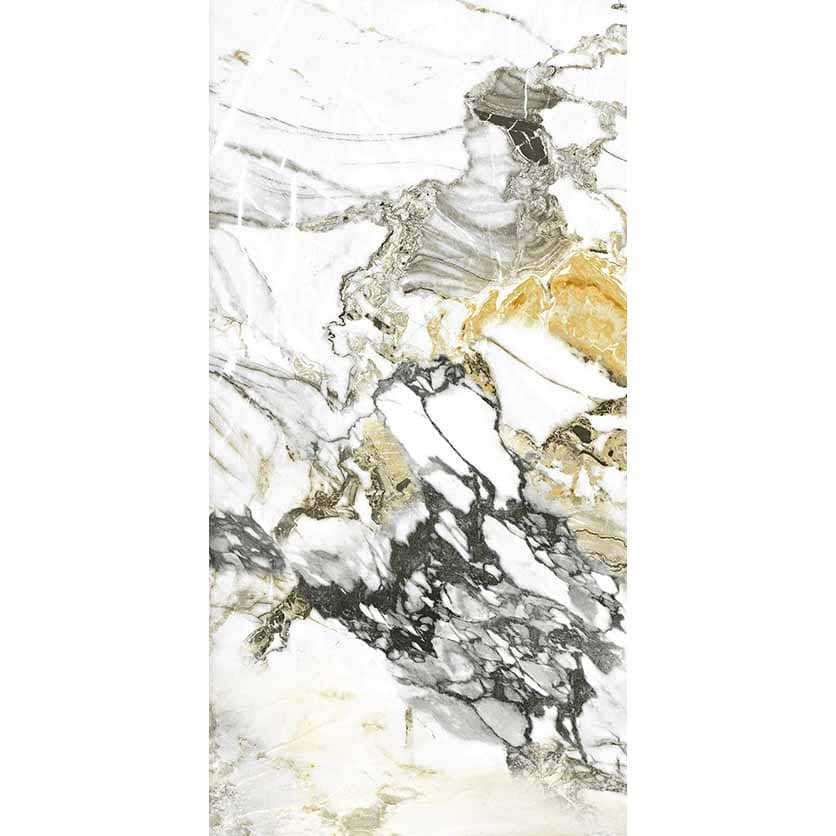 Керамогранит Cr. Lux Grotta Oro 60×120 представляет собой белый глянцевый оникс с прожилками с эффектом несильно прозрачного мрамора оникса. Благодаря специальной обработке данный оттенок отлично вписывается в современные минималистичные проекты. Белый оникс выглядит плотным камнем во всех вариация рисунка в технике Compacglass