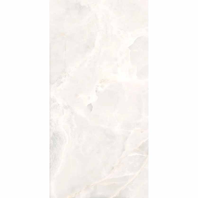 Керамогранит Cr. Lux Noor White (Leviglass) Rect. 60×120 представляет собой белый глянцевый оникс с прожилками с эффектом прозрачного мрамора оникса. Благодаря специальной обработке данный оттенок отлично вписывается в аутентичные проекты. Белый оникс выглядит полупрозрачным камнем ониксом с серыми прожилками во всех вариация рисунка в технике Leviglass. Такая технология обработки делает оникс играющим на свету, придает особую глубину рисунку камня. Смотрится чуть серее, чем вариант обработки Compacglass за счет эффекта глубины.