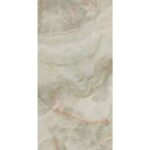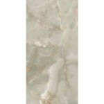 Керамогранит Cr. Lux Noor Apple 60×120 представляет собой испанский керамогранит с под зеленый мрамор оникс. Цвет данного артикула воспроизводит с невероятной точностью редкий в природе зеленый оникс. Название получил цвет зеленого яблока. Поверхность у плит полированная с суперглянцевой отражающей способностью. В производстве керамогранита используют современные цифровые технологии. Благодаря этому в рисунке данного материала используется большое количество лиц эмали. В карусели товара вы можете пролистать варианты лиц рисунка эмали с разнообразными прожилками.
