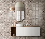 - применяться в современных интерьерах ванных комнат. Она сочетается не только с плитками коллекции. Ее можно сочетать с другими отделочными материалами. Такими как бетон, штукатурка, покраска, дерево. Плитки небольшого формата в интерьере создают уютную атмосферу. Прекрасно вписываются в неоклассические интерьеры, в ретро-стиль.