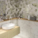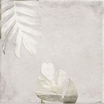 Керамическая плитка Tahiti white 20х20 облицовочный материал для стен от завода Mainzu. Испанский завод Mainzu выпускает мелкоформатную плитку для ванных комнат и санузлов. Плитка в формате 20х20 см может быть использована в отделке стен ванны или на фартуке кухни. Плитка Tahiti white это прежде всего мелкая плитка в формате 20 20 см. Особенностью ее является дизайн эмали. Эмаль у нее матовая с эффектом потертостей, дополненная рисунками. Плитка сочетает 9 лиц. На плитках нанесен растительный узор листьев папоротника и монстеры. При этом эмаль невероятно красива за счет неравномерности цвета на эмали и узора. Затемненные пятна на эмали плитки с листьями подчеркивают ее ретро стиль. Она может сочетаться с настенной плиткой Tahiti white. Все эти плитки продаются на метраж. Поэтому интерьер ванной комнаты из мелкой плитки не будет стоить вам дорого.