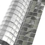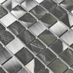 Мозаика металлическая Metal 30×30 — дизайнерская мозаика из металла для облицовки стен в интерьере. Спецификой мозаики является ее сочетание металлических стальных чипов со стеклянными, что создает особую игру на свету. Стальные чипы изготовлены из стального хромированного листа, и имеют лазерную насечку, а стеклянные чипы окрашены белым цветом под стеклом. Общая цветовая гамма мозаики выдержана в благородном бело-серебряном цвете.