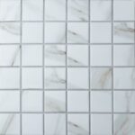 Мозаика Calacatta Gold-48 30.6×30.6 см представляет собой мозаику из керамогранита с матовой эмалью белого цвета. Свое название получила благодаря оригинальной стилистике под мрамор. Чипы мозаики выполнены под мрамор калакатта, что придает облицованной поверхности природную стилистику. Этот материал отлично подходит для облицовки фартука на кухне, в душевой кабине, для отделки стен и пола в ванной комнате.