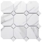 Мозаика керамическая Tango 30X30 — представляет собой декоративную матовую мозаику из цифрового керамогранита в чипах выполненную под мелкую напольную плитку 10х10 со вставками. Мозаика Tango это отличный облицовочный керамогранит на пол в маленькое помещение. Для удобства укладки маленькие плиточки приклеены на сетку и поставляются листами 30*30см. При облицовки пола или стен керамической мозаикой Tango создается эффект облицовки поверхности 2 форматами мелкой плиткой. Самый крупный формат в укладке приближен к привычной керамической плитке 10 на 10, только имеет срезанные углы, за счет чего плитка приобретает форму восьмиугольника. Пространство между этими плитками заполняют вставки квадратной формы под белый керамогранит размером 25х25мм. Продается керамическая мозаика Tango кратно листу, цена указана за лист.