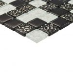 Мозаика стеклянная MC 2251 30×30 — стеклянная черно-белая мозаика. Мозаика представляет собой микс из чипов 23х23 мм. В черно-белом миксе собраны чипы 23*23 мм дополненные серебряными чипами. Мозаика из каленого стекла может применяться в отделке на любых поверхностях. Данный микс МC 2251 сочетает белое, черное и серебряное стекло. Черные чипы выполнены с геометрическими рисунками в серебре. Графический дизайн этого микса идеально подходит для современных интерьеров. Дизайнерская форма мозаики из разных размеров чипов актуальна в настоящее время как никогда. Ее используют для облицовки на стены ванной комнаты, она может сочетаться с керамической плиткой в облицовке стен интерьера или использоваться как самостоятельный отделочный материал на фартук кухни. В этих условиях дизайнерская благородная мозаика цвета металлик с глянцевым блеском легко моется, не впитывает жиры и прочие загрязнения и создает поистине яркий акцент в интерьере. Мозаика из закаленного стекла подходит на фартуки кухни, для отделке стен и пола ванных комнат. Этот микс из стекла эффектно смотрятся в интерьере. Толстое закаленное стекло мозаики создает эффект глубины отделки. Стильная эксклюзивная мозаика создана для вашего интерьера.