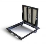 Напольный люк «Портал» 70Х70 см представляет собой люк под плитку и люк под ламинат на газовых амортизаторах. Отличительная особенность конструкции заключается в способе открытия дверцы. Он предназначен для организации скрытого подполья в жилом интерьере. Люк открывается не ключом, а кнопкой в полу. Размер люка соответствует монтажному отверстию в полу. После монтажа отделочного материала на дверцу люка в интерьере его становится не видно. Поэтому этот люк получил название люк-невидимка напольный.