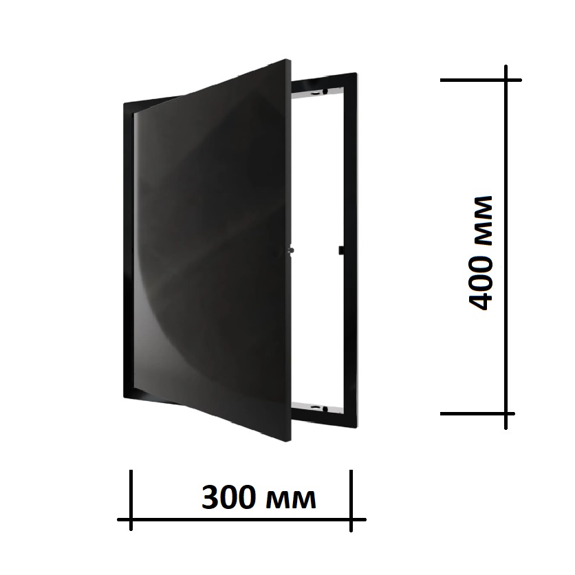 Ревизионный люк Evecs L3040N black черного цвета с фланцевым креплением идеально подходит для проема размером 300×400 мм. Его наличник имеет габариты 327×427 мм, а сам фланец соответствует 400×400 мм. Этот ревизионный люк предназначен для быстрого и удобного доступа к счетчикам, скрытым узлам, водопроводным кранам и прочим инженерным коммуникациям. Люк оснащен нажимным механизмом, который позволяет легко открывать и закрывать дверцу, просто нажав на углубление. Механизм замка рассчитан на 30,000 циклов использования и может работать при температурном диапазоне от -10 до +50 градусов.