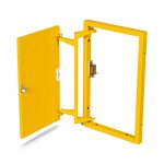Представляет собой стальной люк невидимку с нажимным замком. На дверцу такого люка можно поклеить любой отделочный материал. Будь то плитка или керамогранит- грузоподъемности дверцы хватит.