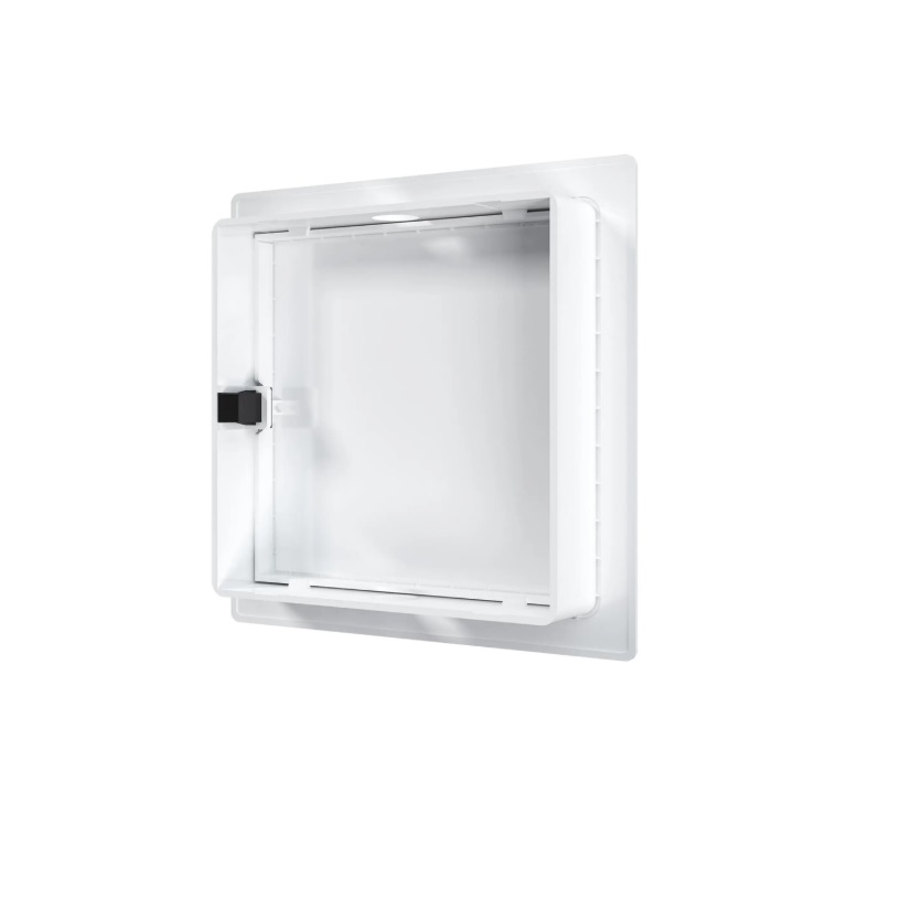 Ревизионный люк Evecs L1010N с фланцевым креплением идеально подходит для проема размером 100×100 мм. Этот ревизионный люк предназначен для быстрого и удобного доступа к счетчикам, скрытым узлам, водопроводным кранам и прочим инженерным коммуникациям. Люк оснащен нажимным механизмом, который позволяет легко открывать и закрывать дверцу, просто нажав на углубление. Механизм замка рассчитан на 30,000 циклов использования и может работать при температурном диапазоне от -10 до +50 градусов.