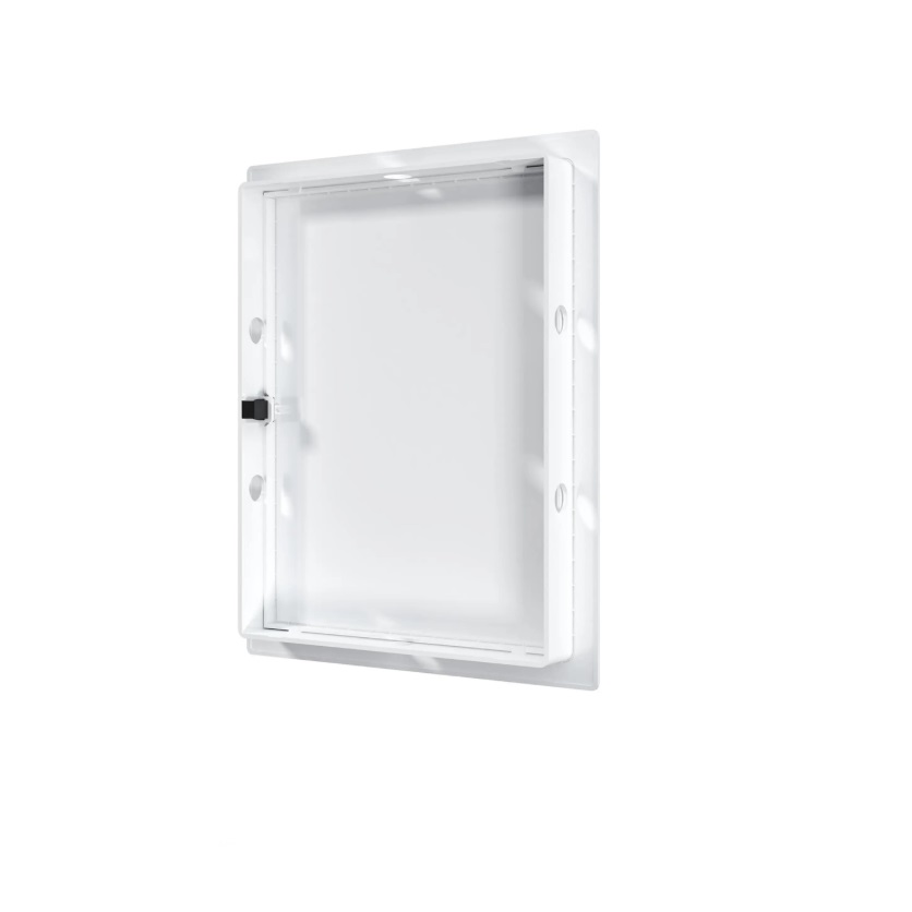 Изделие создано из прочного ABS-пластика, который отличается долговечностью и устойчивостью к ультрафиолетовому излучению. Этот материал не ржавеет и сохраняет свой внешний вид даже в условиях высокой влажности. Гладкая и глянцевая поверхность пластика не желтеет со временем. Дизайн люка универсален, что позволяет монтировать дверцу с петлями как на левую, так и на правую сторону, обеспечивая комфортное использование. Нажимной замок надежно фиксирует дверцу, предотвращая ее случайное открытие, поэтому люк можно устанавливать как на стенах, так и на потолке. Монтаж возможен с использованием клея или саморезов.