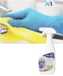 Средство от известкового налета распылить на поверхность и оставить для реакции на 5-10 минут. После чего поверхность вымыть чистой водой и протереть на сухо. Не портит металлические поверхности, поэтому может наноситься на смесители ванной комнаты и аксессуары. Средство может применяться для очистки поверхностей как снаружи так и внутри.