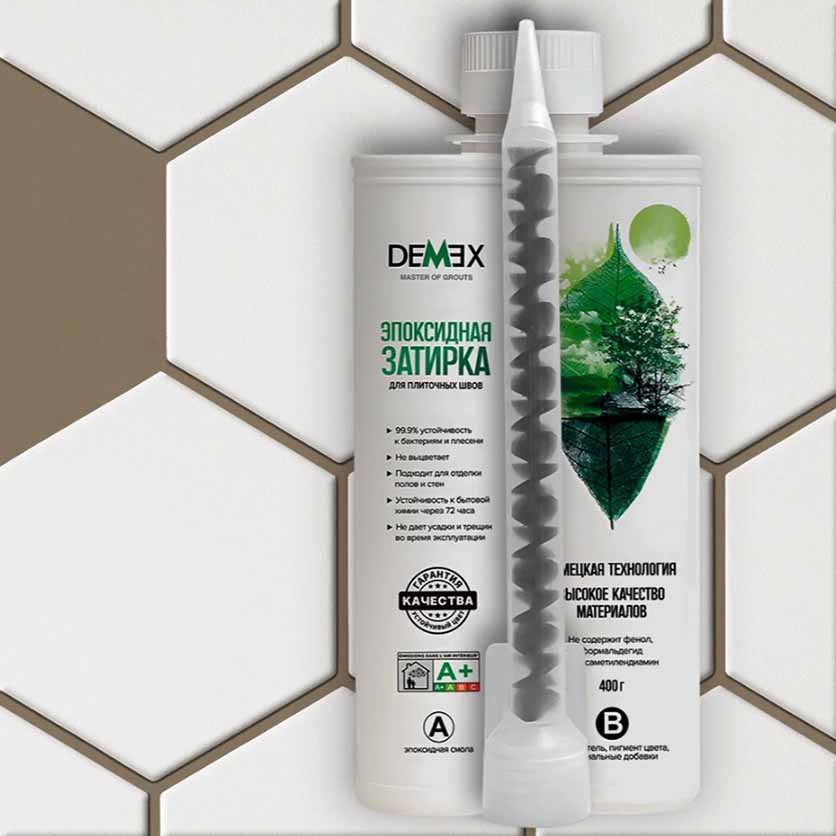 Эпоксидная затирка DEMEX, разработанная по передовым немецким технологиям на автоматизированных линиях, обеспечивает исключительную прочность и стойкость к влаге. Она устойчива к плесени и воздействию бытовой химии, не выцветает и сохраняет свои характеристики до 50 лет. Благодаря уровню летучих веществ класса А+, она абсолютно безопасна для здоровья. Удобная двойная туба с насадкой-миксером упрощает процесс нанесения и позволяет хранить открытую упаковку до двух лет.