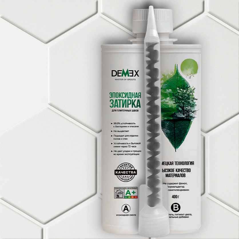 Эпоксидная затирка DEMEX, разработанная по передовым немецким технологиям на автоматизированных линиях, обеспечивает исключительную прочность и стойкость к влаге. Она устойчива к плесени и воздействию бытовой химии, не выцветает и сохраняет свои характеристики до 50 лет. Благодаря уровню летучих веществ класса А+, она абсолютно безопасна для здоровья. Удобная двойная туба с насадкой-миксером упрощает процесс нанесения и позволяет хранить открытую упаковку до двух лет.