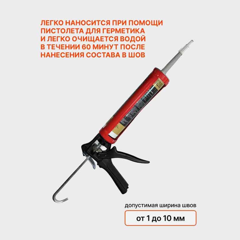 2.3. Заполните швы готовым составом, используя носик тубы и пистолет для герметика. ВНИМАНИЕ! У вас есть 60 минут, чтобы сформировать шов без спешки. ВНИМАНИЕ! Время полимеризации шва может варьироваться в зависимости от его толщины.
